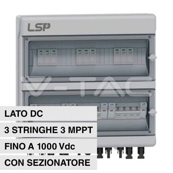 Quadro elettrico DC a 3 stringhe e 3 MPPT per impianti fotovoltaici. Dispositivo composto da scaricatore di sovratensione ...