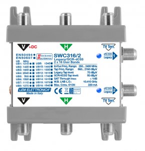 Multiswitch a 3 cavi in cascata 2 derivate utente con 16 user band