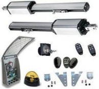 Kit automazione per cancello a 2 ante. Composto da: 2 motori con sblocco. Corsa stelo 300 mm, per ante fino a 2 metri. Apertura totale del cancello 4 metri. 1 centrale SV-BUP con ricevente radio 433,92 Mhz, in autoapprendimento. 2 radiocomandi codifica UM 86409 SV-R2C. 1 coppia di fotocellule SV-FAT. 1 faro SV-LPF. 1 selettore a chiave SP-SC2 con 2 chiavi. Cartello monitore. Istruzioni. Alimentazione 220 V. 50 Hz